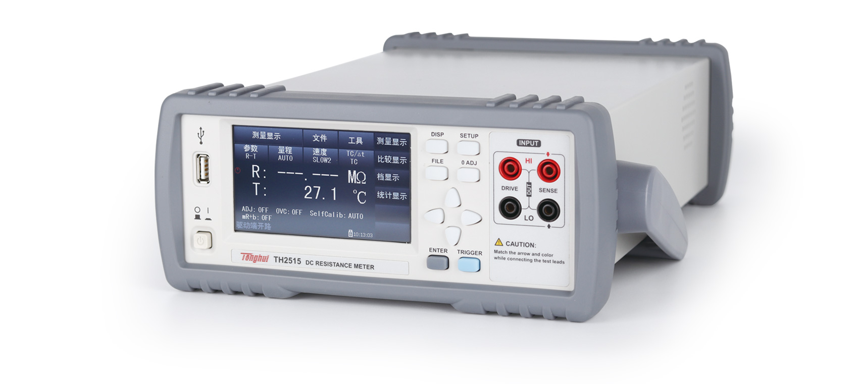 ■ 同惠電子憑借其在阻抗測試領域深厚的技術積淀和廣泛的市場調研,推出了帶觸摸功能和彩色液晶顯示的直流阻抗測試儀器--TH2515系列直流電阻測試儀。其較高的性能、便捷的操作、精美的外觀足以相較于市場上的前沿產品。TH2515系列直流電阻測試儀采用當前主流的32bits CPU和高密度SMD貼裝工藝,帶觸摸功能的24位色4.3英寸彩色液晶屏,界面清爽、操作便捷;0.01%的最高電阻測量精度及0.1uΩ最小電阻分辨率在國內首屈一指,其適用于繼電器接觸電阻、接插件接插電阻、導線電阻、印制板線路及焊孔電阻等;很好的消除了熱電對被測元件接觸的影響而引起的潛在誤差;溫度補償和溫度轉換功能免除環境溫度對測試工作的影響;失調電壓補償功能能夠有效消除被測件的自身的電動勢以及接觸電勢差;其超高速的測試速度以及通過handler接口可以輸出10檔不同邊界的比較結果信號,便于生產線上的自動化操作。TH2515系列提供了幾乎所有主流的接口功能,可方便的與PC進行數據通訊和遠程控制。
