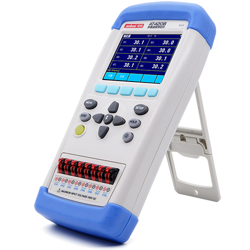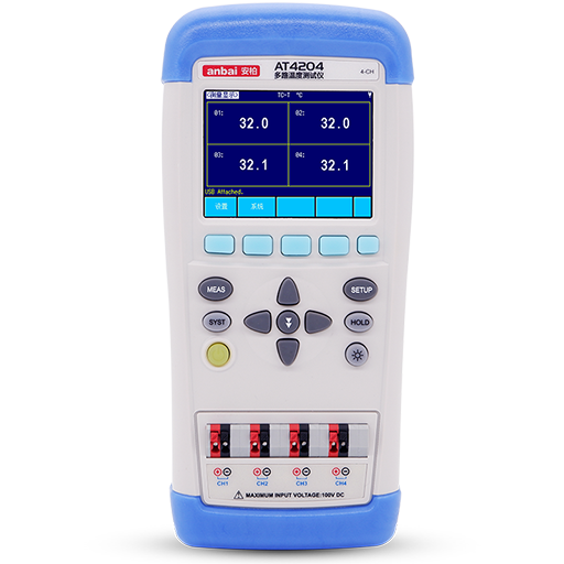 AT4204手持式多路溫度測試儀采用高性能32位ARM微處理器控制,可同時對4路溫度數據進行采集,上超下超報警和通訊傳輸,兼容K/N/E/J/T/R/S/B型熱電偶,響應速度快,數據穩定,同時具備斷偶檢測功能。超低功耗設計和高密度SMD裝配工藝,真彩TFT液晶顯示屏,并具有鍵盤,觸摸屏 雙控制。采用鋰電池供電,USB通訊。中英文操作界面可快速切換。儀器標配的數據采集軟件為您進行數據分析提供強有力的支持!