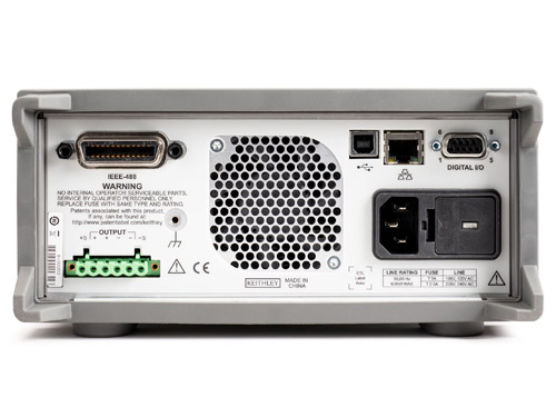 圖11 2280S系列后面板包括后部輸出連接器(用于遠程檢測輸入)、數字 I/O以及3個接口(GPIB、USB和LAN)。