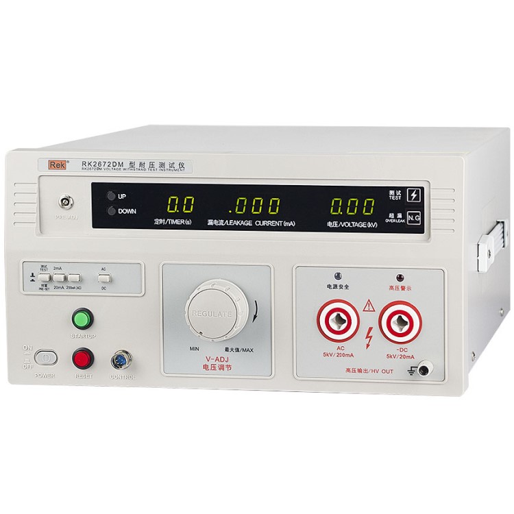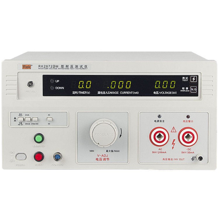 美瑞克RK2672系列耐壓測試儀是測量耐壓強度的儀器,可以直觀、準確、快速地測試各種被測對象的擊穿電壓、漏電流等電氣安全性能指標,并可以作為高壓源用來測試元器件和整機性能。