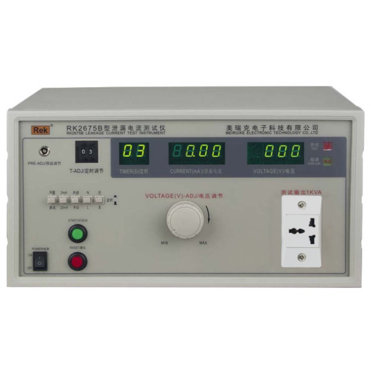 RK2675系列泄漏電流測試儀用于測量電器的工作電源(或其他電源)通過絕緣或分布參數(shù)阻抗產(chǎn)生的與工作無關(guān)的泄漏電流是衡量電器絕緣性好壞以及產(chǎn)品安全性能的檢測實驗設(shè)備。